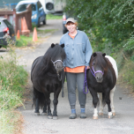 Omdat ik hem nog niet eerder zolang achter elkaar heb moeten missen, gaan Guusje en ik tussendoor nog een keer bij hem kijken en wandelen we mee met de jonge hengsten. Na 4 weken is hij al echt verandert. Krachtvoer en training maken hem alk meer hengst en hij ziet er stoer uit met zijn korte beentjes. Hoe hoog hij precies is weten we nog niet, maar hij valt duidelijk in de kleine maat en is daardoor de kleinste gefokte Oberon.