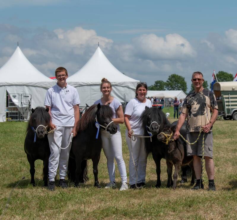Vanochtend waren we al vroeg op pad met ons hele team en ons drietal knappe pony's. Sandra was er ook en zij bracht deze dag Hexia met haar merrieveulen Quilin mee. Quilin zat meteen al in de eerste rubriek en ze haalde de 5e plaats. Omdat er buitengewoon veel afmeldingen waren, was Lothian al voor de pauze aan de beurt. Ook zijn enige "tegenstander" was afwezig en dus een 1e plaats voor onze kleine bonte ruin. De beker was deze keer voor Guusje, de rozet voor Lotte.